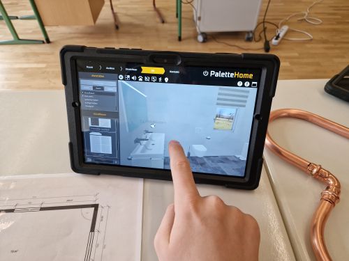 Digitale Badplanung am iPad: Hier konnten die Jugendlichen erleben, wie moderne Technik im Handwerk eingesetzt wird. Mit viel Begeisterung wurden Grundrisse entworfen, Materialien ausgewählt und individuelle Badkonzepte gestaltet.