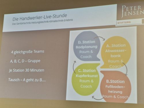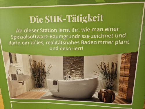 Wie fühlt es sich an, eine Fußbodenheizung selbst zu verlegen? Wie entsteht aus einzelnen Rohren ein dekoratives Herz? Und wie plant man eigentlich ein modernes Bad – ganz digital am iPad? Antworten auf diese Fragen bekamen ausgewählte Schülerinnen und Schüler am 10. Februar bei der „Handwerker-Livestunde" – einem besonderen Praxistag, der Theorie und Berufswelt auf eindrucksvolle Weise miteinander verbunden hat.